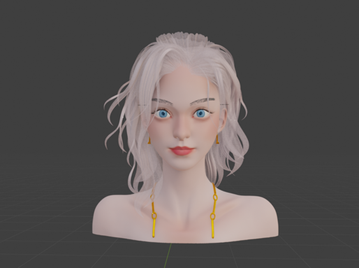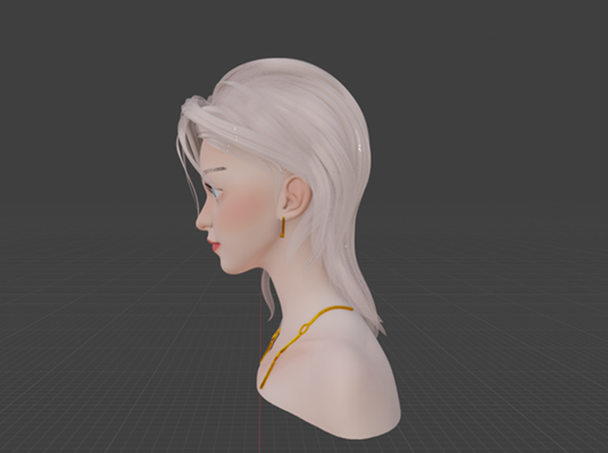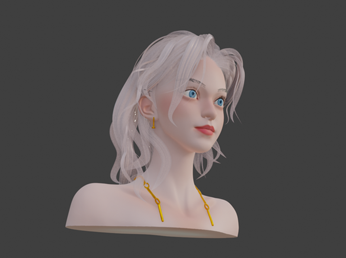 This 3D character model was made by Blender, inspired by an image I came across online that captured a blend of ethereal beauty and modern aesthetics. The character features delicate, almost porcelain-like skin, with soft, flowing white hair that adds a touch of fantasy. The bright blue eyes stand out, giving the character a captivating, almost otherworldly presence.