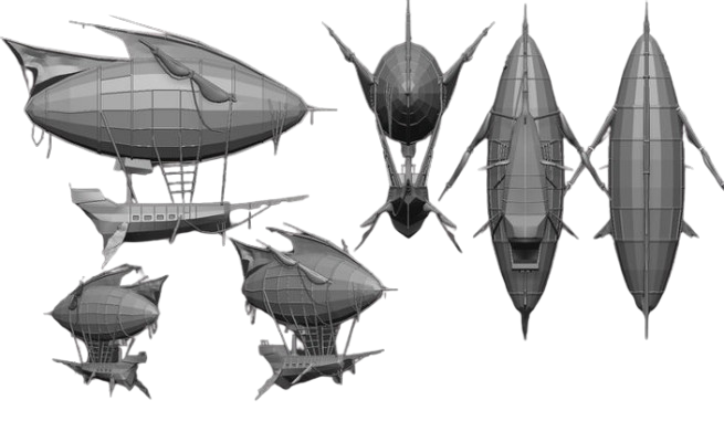 This set of models was designed for the game project “Morning Star” by Studio of Fantasy. The spacecraft forms are significantly influenced by old-fashioned airships, combining elements of traditional and future technology. The design of these ships is based on specific pictures and guidance provided by the game company to ensure that they fit the setting and visual style of the game world.